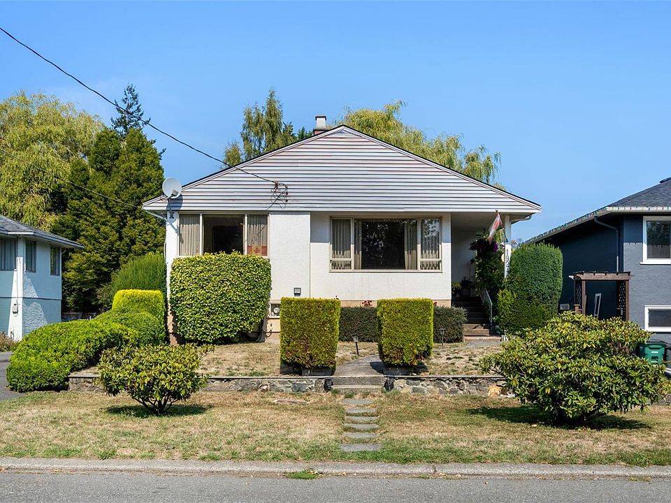 OPEN HOUSE Saturday Oct 4th 12:00-1:30pm. First time on the market since 1954! Across from Allenby Park on the Saanich/Oak Bay border and steps to Carnarvon waterpark, this cherished family home has been loved by the same owners for nearly 70 years. With 3 bedrooms, 1 bath, a bright sunroom, and a lower-level walkout featuring 7 ft ceilings, bar, games area, storage and workshop, the layout is ideal for family living or future suite potential. A cozy wood-burning fireplace anchors the living space. The kitchen has updated cabinets, counters and appliances, while the rest of the home reflects its era and invites your ideas. The 50' × 120' lot is a true gem with a Saanich Fair award-winning apple tree, greenhouse and spacious yard. In a coveted neighbourhood where families stay for generations, this is a rare chance to create your own story—with possible suitability for Saanich’s new Small-Scale Multi-Unit Housing (missing middle) program.