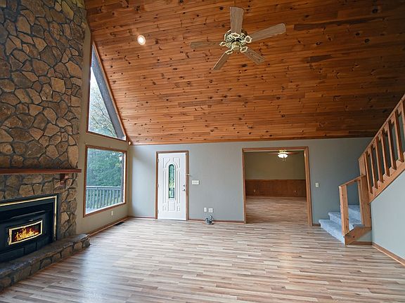 STUNNING RUSTIC CLASSIC situated on 6.76 acres of rolling pasture & long range mountain views. This home features a gentle mix of wood, drywall & stunning open wood beams. Large open, easy flowing design with tons of windows, family sized kitchen with solid surfaces & breakfast area with stone accent. Owner's suite on the main & ensuite includes dual sinks, jetted tub & separate shower. Massive stone fireplace warms the living room on those chilly nights. Rare 2 car garage, seperate laundry, lots of decking, screened porch & gated entrance. If outdoor living and space to roam is on your bucket list, LOOK NO FURTHER.