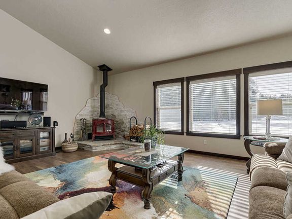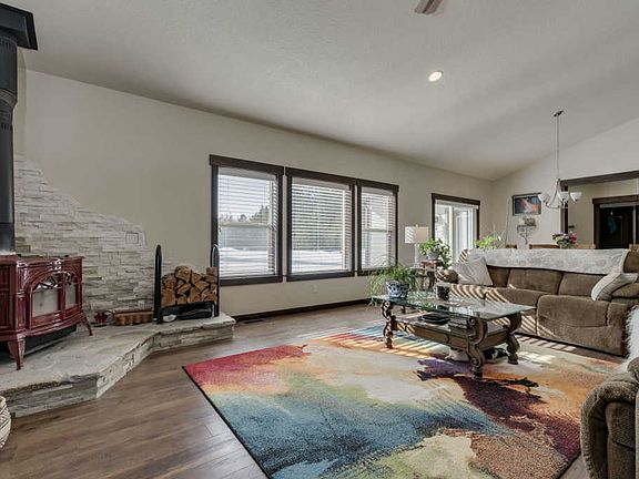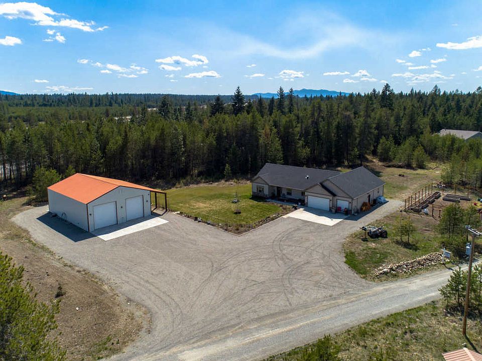 Gorgeous, SINGLE-LEVEL custom home on 5 pristine acres. Desired open floor plan w/a split bedroom design, 3 bdrms, 2.5 baths, dedicated office, vaulted ceilings, wood laminate flooring throughout. Vermont Castings Wood Stove to keep you toasty in the winter. Walk-in pantry, open kitchen with granite counter tops, stainless-steel appliances & Alderwood Cabinets with soft close drawers. You'll love the sprawling master bedroom suite w/spacious walk-in closet, dual vanity sinks, & floor to ceiling tile, dual-headed walk in shower. 3 Car HEATED and over-sized garage for attached storage. Outside is a 40 X 60 fenced garden area and the 40 X 60 shop has water, heat, is dual insulated, and has 3 access doors. Minutes to Coeur d'Alene and Hayden! This is the oasis you have been searching for!!