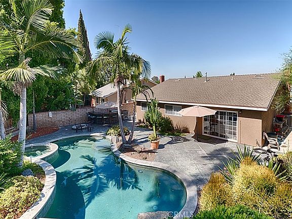 Spectacular pool home just in time for summer! This home is perfect for outdoor living. Extra-large lot with a gorgeous Pebble Tech Pool & Spa surrounded by custom concrete decking. There is plenty of backyard space available for a play area or garden (or both?). The Outdoor BBQ station overlooks the pool and patio and comes with a brand-new stainless steel gas grill, plus a new fridge, to add to the fun while entertaining your friends and family on a sunny afternoon. Be sure to see to the gas firepit located near the pool and spa area. This 3-bedroom home offers a single-story layout with an open floor plan that features a large kitchen that opens into a spacious dining area. The remodeled kitchen has newer appliances, including a new microwave, recessed lighting, and a breakfast bar. The primary bedroom has a soaring ceiling with a fan and a slider that provides direct access to pool and spa. The primary bathroom was beautifully remodeled in 2023 with a new shower and vanity. Mirrored wardrobe closet doors are in all three bedrooms. Raised panel doors were installed throughout. New wood style laminate flooring installed in the kitchen, dining area, entry, and hallway in 2023. The interior was just repainted in 2023. New HVAC system in 2022, includes an Eco Bee thermostat with individual room sensors that you can control with an App on your phone. The newer garage door opener also has an App. This neighborhood attends schools that are located in the award-winning Placentia-Yorba Linda School district.
