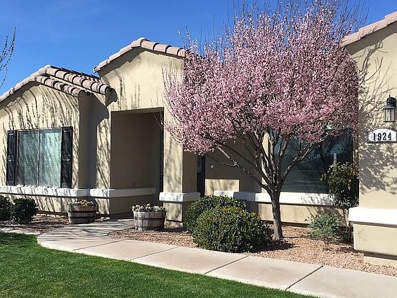 This timeless Thatcher home offers views of Graham Mountain with no backyard or northside neighbors, ensuring privacy and tranquility. Conveniently located near the community park, it has been lovingly remodeled with thoughtful upgrades, including real wood floors in the dining area, custom wall moldings, and granite countertops. The family room features vaulted ceilings and large windows that fill the space with natural light and frame lovely mountain views. The oversized bedrooms accommodate spacious living quarters. The backyard is a private oasis, featuring a pergola patio with classic pavers, mature fruit trees, and grapevines for a cozy ambiance. With an RV gate and spacious side yard for your toys, this home blends style, comfort, and practicality. Truly a rare find!
