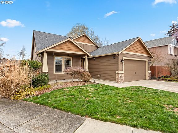 This charming 3-bedroom, 3-bathroom home, built in 2012, offers a perfect blend of comfort and functionality with 2,127 square feet of living space. The spacious, open-concept great room combines the family, dining, and kitchen areas, creating an ideal space for entertaining. A formal living room with a cozy fireplace adds an extra touch of elegance to the main level. The gourmet kitchen features granite countertops, a large island, a pantry, and high-quality appliances including a built-in microwave, dishwasher, disposal, and electric stove. The main level includes two full bathrooms, one of which serves the primary bedroom providing convenience and privacy, the other serves the 2nd bedroom and visitors. The primary suite is a true retreat with a walk-in closet and an en-suite bathroom boasting dual vanity sinks and a shower. Upstairs, you'll find another full bathroom, the third bedroom, and a spacious bonus room, offering plenty of options for a home office, playroom, or additional living space. This home is equipped with a gas forced-air furnace and air conditioning, ensuring comfort year-round. The welcoming front porch adds curb appeal, while the fenced backyard features a 12 x 10 concrete patio, perfect for outdoor entertaining and summer barbecues. Additional features include garage door openers for convenience. A well-rounded home, it combines stylish design with functional living spaces, making it an excellent choice for any family!