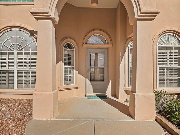 Resting proudly on a large corner lot just a block from Memorial Medical Center, this beautiful home is move-in ready. The formal living and dining areas glow with natural light streaming through arched radius windows, many with plantation shutters. A cozy family room with fireplace opens to the kitchen via the breakfast nook. Kitchen provides all appliances and solid surface counters with integrated sinks, echoed in the bathrooms. A third bedroom sits beside the foyer and doubles nicely as an office with a built-in bookshelf in place of the closet. The primary suite offers access to the extended back patio, while its spa-like bath showcases dual vanities, a central makeup counter, jetted tub, separate shower, and cedar-lined walk-in closet. Skylights illuminate the hall, complete with glass display shelving. Outside, enjoy raised garden beds and a double side gate. The community is highly accessible, minutes from NMSU, golf courses, shopping, dining, and both major interstates. *some photos are Ai Staged*