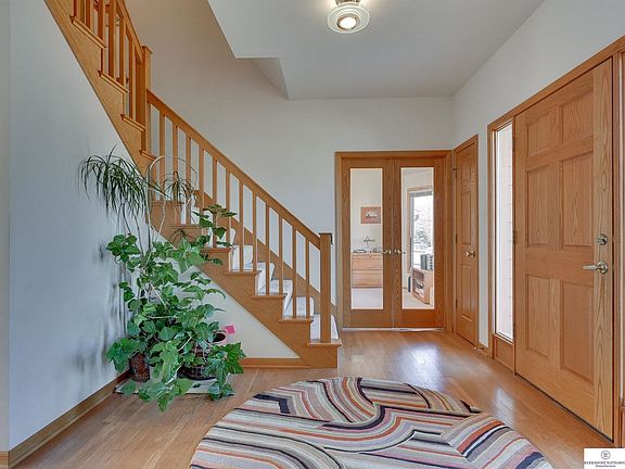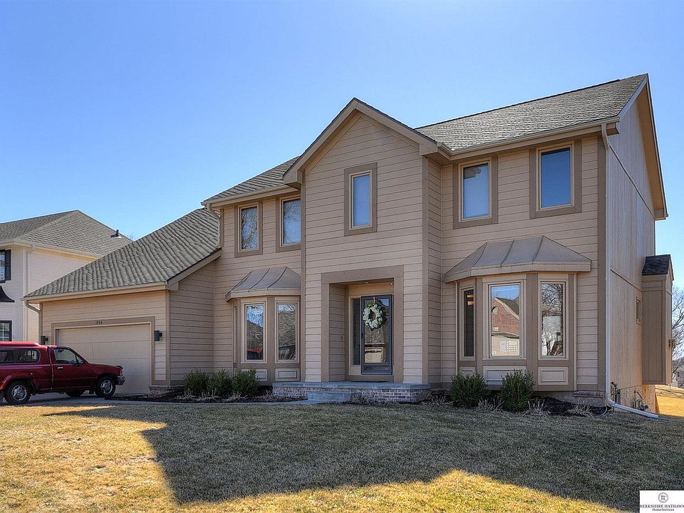 A spacious Walkout 2 Story in The Ridges - 4bedroom/4bath/3car (tandem) on a beautiful lot. The living room and Dining Room provide multiple spaces to customize for your lifestyle.The family room & kitchen have an open floor plan w/ lots of windows for natural light & great views of the backyard. The kitchen has new quartz counters, sink, faucet & disposal w/ a huge pantry & planning desk. The dining space is surrounded by windows w/ sliding glass doors to the deck. The garage has a separate furnace w/ insulated garage door - perfect man cave! The 2nd floor has a huge primary suite w/ a sitting room that has a fireplace. A primary bath has dual sinks, lots of counter space & whirlpool tub plus 2 huge walk in closets. There is also 3 secondary oversized bedrooms w/ walk-in closets & a Jack and Jill bathroom. The unfinished walkout basement has lots of unlimited potential. A convenient location to shopping, Dodge Expressway, Elkhorn Schools & walking distance to park. Welcome Home!
