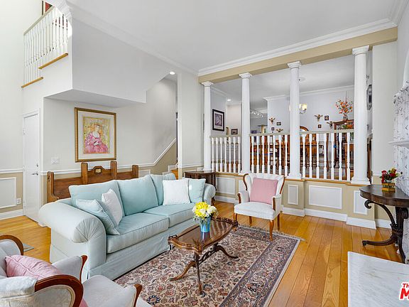 Sensational, quiet townhome at the back end of this 5-unit building, away from Barrington, and with only one common wall. The home has 3 BR + den/family room, 2 1/2 BA and a private, enclosed patio plus 3 additional balconies! Enter to a formal living room with soaring ceiling, cozy fireplace, and patio access. Step up to the formal dining room, a generous kitchen with granite countertops and an adjacent den/family room with balcony facing a mature privacy hedge. The large primary bedroom includes another fireplace, large closet, ensuite bathroom and wrap-around balcony. The two additional bedrooms upstairs share a bathroom. In addition to large windows, high ceilings and skylights that allow light to stream throughout the unit, there are many custom details such as crown moldings and wainscoting, hardwood floors, and ample closet space! Gated access both from the street and driveway into private 2-car direct access garage provide added security. Exceptionally convenient West LA location near shopping, restaurants as well as easy freeway access. Large, light, bright and private with outdoor space and openness...is this not what dreams are made of?