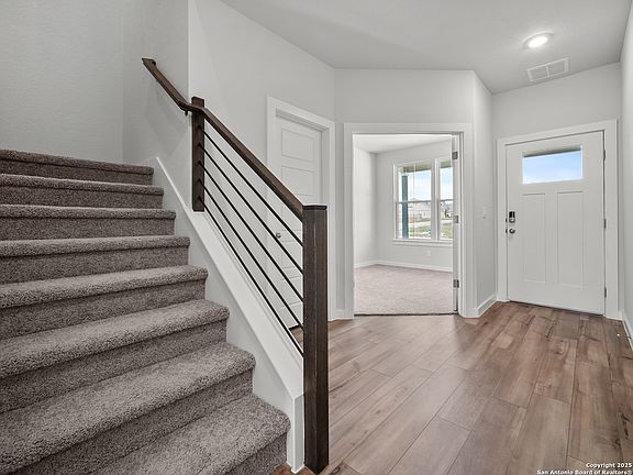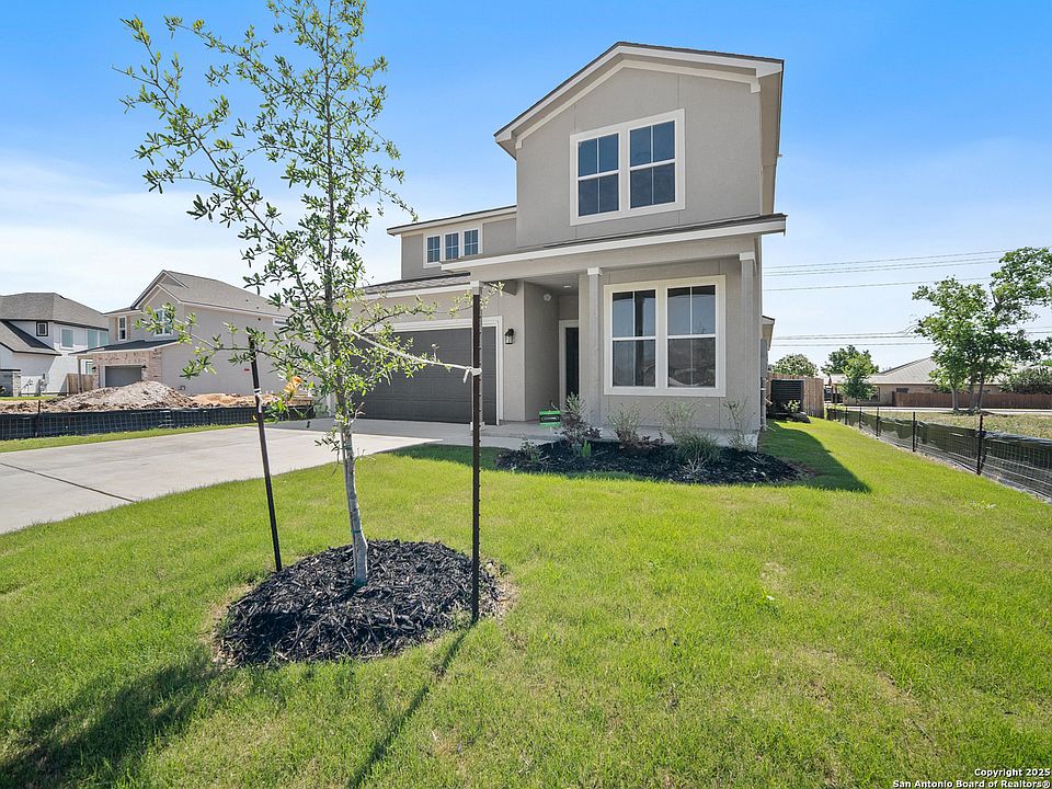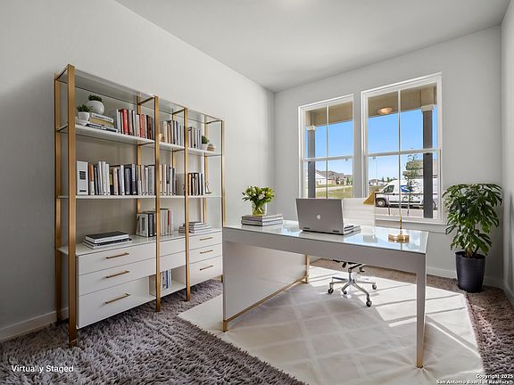 Incredible opportunity! Enjoy an amazing 4.99% fixed interest rate on FHA or VA loans with closing cost assistance that means little to no cash out of pocket AND low monthly payments! This move-in ready, 4-bedroom, 3-bathroom gem in the vibrant August Fields community offers pure modern living at its best. Downstairs, a private primary suite treats you to a spa-like retreat with a walk-in shower, double sinks, and plenty of closet space, while a versatile guest suite-with its own full bath-is perfect as a mother-in-law suite or a private haven for visitors. Plus, a dedicated home office on the main level keeps your work and play perfectly balanced. Upstairs, two additional bedrooms in a highly functional layout round out the space for family living. The stylish kitchen-with custom cabinetry, a designer backsplash, and a generous island-sets the stage for unforgettable meals and gatherings. And the perks don't stop there: enjoy a sprinkler system, pre-plumbing for a water softener, and energy-efficient features throughout. Best of all, you're just minutes away from the Guadalupe River, Historic Gruene, vibrant downtown New Braunfels, and community amenities like play structures, pickleball and basketball courts, dog parks, picnic spots, and scenic trails. Don't miss your chance to take advantage of these amazing incentives and call this dynamic home yours!