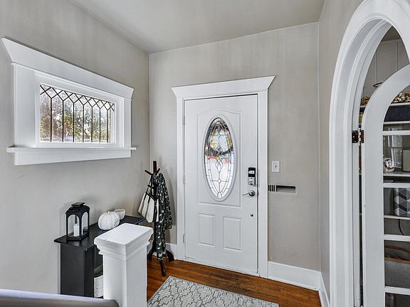 Welcome to this adorable, classic style home in the heart of Spokane. Upon entering you are welcomed into the entry hall with tall ceilings, a wraparound staircase, and curved archway into the open concept living room and dining room. The living room features a wood burning stove and an abundance of natural light from the large windows overlooking the front yard. The kitchen has been tastefully updated with freshly painted cabinets, butcher block countertops, and stainless steel appliances. Upstairs are 3 bedrooms and full bathroom with tiled floor. Original hardwood floors run through both floors of the house. The unfinished basement offers ample storage space, an exterior entrance, and a workshop space. The backyard is fully fenced and has a 1-car garage with alley access. The composite front porch was installed in 2024. This home is conveniently located only 4 minutes to Kendall Yards, the Spokane Arena, Downriver Golf Course and Audubon Park!