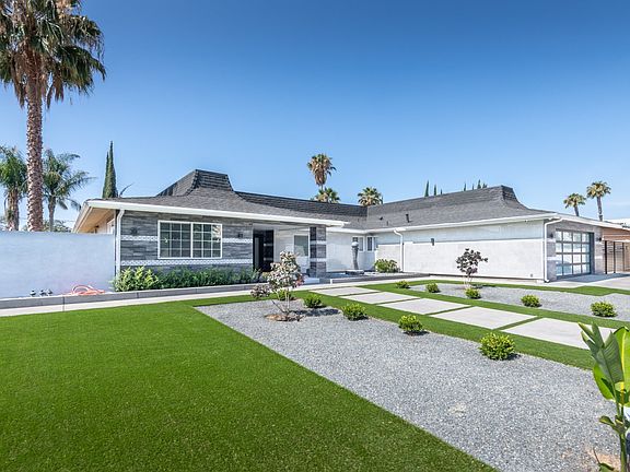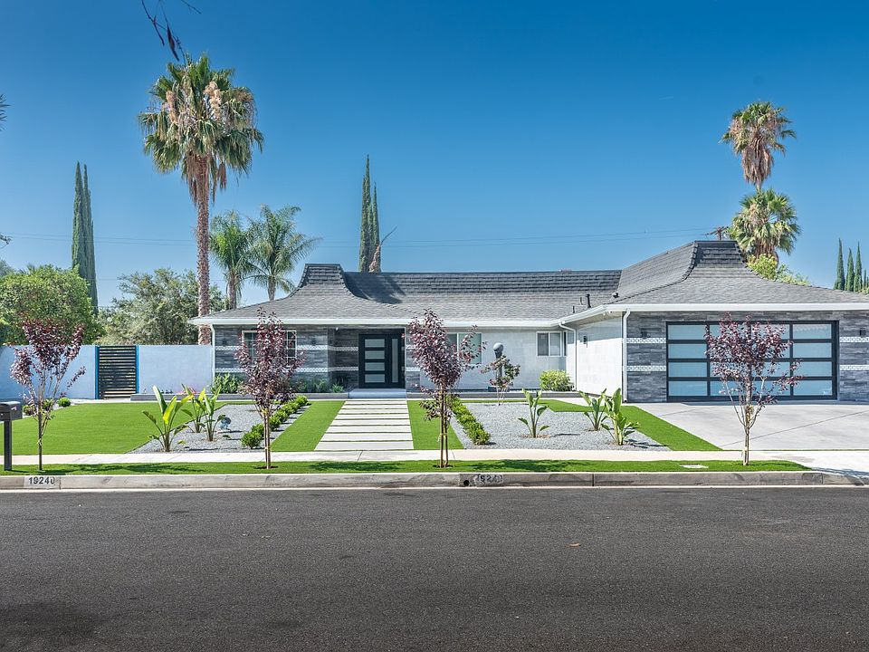 An exquisite celebration of homeownership resides in coveted Northridge! Such flawless landscaping, beauty that's right out of a magazine, provides idyllic curb appeal for even the most discerning visitor. Modern, bright, and airy best describes this incredible open concept 2,380-sqft floor plan accentuated by pristine grey tone laminate flooring throughout, smooth high ceilings, recessed lights, and certainly no shortage of storage. The easy-going living room and luminous dining room are separated by a minimalist fireplace encased in heather grey stone. The huge kitchen is stylized with quartz countertops and equipped with generous cabinetry, all stainless-steel appliances, plus convenient accessibility to the large laundry area complete with direct access to the attached 2-car garage. All well-sized bedrooms include plenty of closet space and share the main bathroom featuring a large vanity sink with storage, a shower-tub combination with rimless glass. One splendorous primary bedroom has effortless elegance with natural sunlight streaming through sliding doors of the back patio and a glittering en-suite bathroom complete with a double sink vanity and a walk-in shower. Outside, delight in the resort style ambiance of the sun-washed backyard. Relax and unwind under the shade of the covered patio space, separate covered lounge area, open outdoor kitchen, firepit, basketball court, and one refreshing in-ground pool. Plus, there's plenty of room for RV parking out in the large driveway. The cul-de-sac seclusion of this home's location offers plenty of privacy to enjoy the vast backyard and entertain with ease! Central to the ever-bustling heart of Northridge, nearby Northridge Fashion Center, CSUN, and surrounded by numerous markets, trendy shops, local schools, eclectic restaurants, parks, and more!