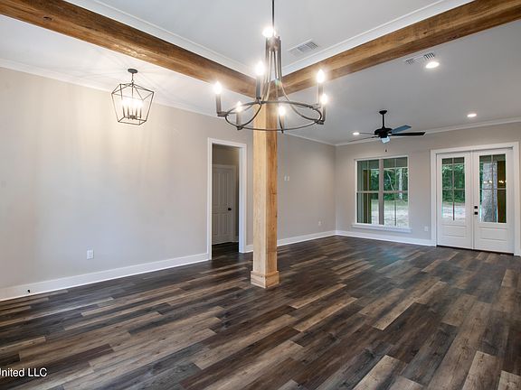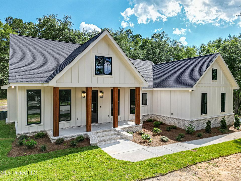 Welcome to your dream home! This custom new build is nestled in a peaceful neighborhood set on a spacious half-acre lot. The tranquil ambiance is perfect for unwinding, especially with the charming tongue and groove ceilings and cypress posts adorning the porches. Adding to the allure, the property is graced by several magnificent oak trees, offering ample shade for gatherings.