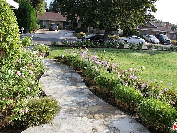 Location, location, location! Cul de sac tree lined location. Great family home in old Porter Ranch. Large bright livingroom and a seperate family room. A downstairs master suite with walk-in cedar closet. The master bath has a seperate shower and jetted tub. A chef's kitchen with granite countertop and a moveable island, breakfast nook and newer sliding glass door leading to the backyard. A guest powder room located off the kitchen. Three additional bedrooms located upstiars along with a bathroom. A seperate laundry room. Wood floors thoughout. The backyard with covered patio and brick floors for low maintenance. Fruit trees on side yard. Hurry don't miss your opportunity to own this lovely home.