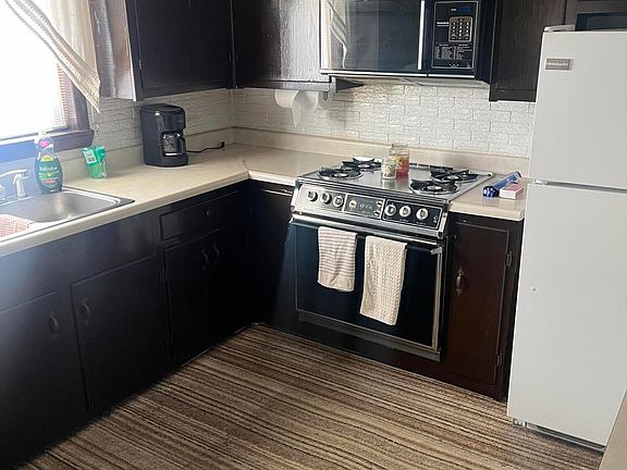 Needs some TLC. Gas hot water heat, vinyl sided, 3 BR home on double lot with 2 car garage.
