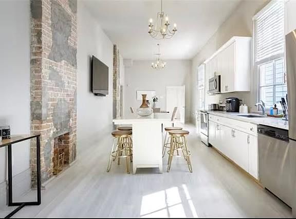 Located in the lively New Marigny neighborhood, you're just minutes from the French Quarter, local cafes, parks, and everything that makes New Orleans unique. Originally a classic New Orleans double, this beautiful property has been thoughtfully converted into a spacious single-family home, offering the best of both historic charm and modern living. Renovated in 2018, the home features a welcoming front porch, for enjoying the vibrant neighborhood atmosphere. Step inside to discover gorgeous exposed brick accent walls, and mock fireplaces, high ceilings, and a bright, open-concept layout that brings in natural light throughout. The contemporary kitchen is outfitted with stainless steel appliances, granite counter tops, sleek finishes, and ample storage, making it a dream for both everyday living and entertaining. Out back, a spacious deck offers a private oasis for relaxing or hosting gatherings, with room to enjoy outdoor living year-round. Tenants are responsible for appliance repairs. 30 Pounds limit for dogs. Furniture is negotiable. Lease fully furnished for $2500