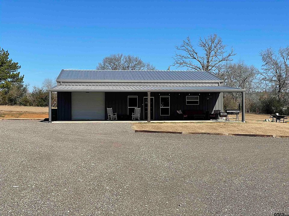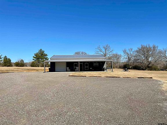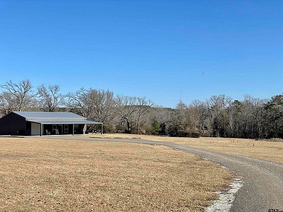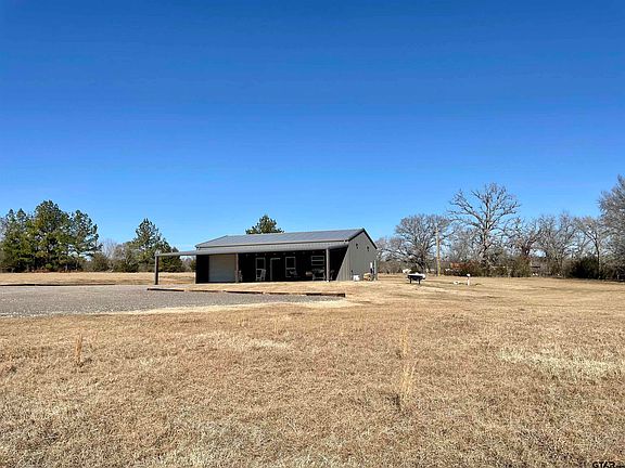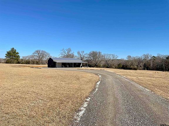 Welcome to your 2022 barndominium style home nestled on 10 acres of serene East Texas land! This 1600 sq ft home boasts an open-concept layout, chic neutral stained concrete floors, and a quartz kitchen counter tops, featuring and premium appliances w/gas stove. Revel in the ambiance of a focal point gas fireplace, enjoy the convenience of a tankless water heater, and unwind in the spacious primary suite with large walk-in closet w/ washer/dryer connections for laundry ease! Double insulation for year-round comfort, a 400 sq ft garage, and a 1000 sq ft carport/front porch, this property combines style and practicality. Explore the 9 acres for hay harvesting for tax break . Also spring-fed creek —your slice of East Texas is waiting!
