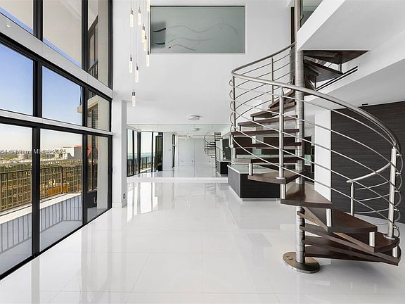 Welcome to this sleek two-story penthouse in Brickell featuring extensive bayfront views! This spacious top-floor unit features 2 bedrooms & 3 full bathrooms spanning over 2,200 SF, boasts 22-ft double-height ceilings, and is meticulously renovated. Interior details include an open-concept kitchen with quartz countertops + island, Thermador appliances, porcelain flooring, a custom spiral staircase, walk-in closets, and an exquisite primary bathroom with marble detailing. On those gorgeous Miami days, sit out on your spacious balcony & enjoy those glistening water views to the fullest! Brickell Place is a gated community including a fitness center, swimming pool with cabanas, basketball, racquet, and tennis courts, and more! All while having Miami's hottest neighborhood at your fingertips!