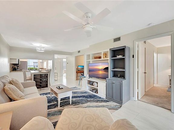 Available ANNUALLY, this 2 bedroom + den, first floor condo is pet-friendly (with approval.) It is being offered FURNISHED/UNFURNISHED or PARTIALLY FURNISHED - you choose. Located in South Naples just 3 miles from the beach and shops in Old Naples, you'll enjoy a location that's tucked away but close to so much! Lightly furnished, the living room/dining room is tiled and offers a large Smart TV, a pass-thru kitchen, and sliding glass doors to the screened lanai with a garden view with tennis courts in the distance. The Primary Bedroom suite offers a queen bed, a Smart TV, a spacious walk-in closet with built-ins, and a remodeled bathroom with a walk-in shower. The second bedroom is furnished with another queen bed and has a nearby bathroom with a shower/tub combination. The den is open and has a loveseat/sleeper sofa as well as a desk. The full-size washer and dryer are in a laundry closet on the screened lanai. Courtyard Village is part of the King's Lake community with great walking trails, bike paths, a community pool and tennis court. You'll be walking distance to King's Lake Square Shopping Center home to Publix grocery store, Starbucks, Tacos and Tequila, and various other shops and restaurants. Per the Homeowner's Association: not more than 2 unrelated persons may reside in the unit; there is 1 assigned parking space but 2 vehicles are allowed; no trucks, motorcycles, motor homes, or boats. Applicants should have excellent credit and 3 times the monthly rent in monthly income. First month's rent due at lease signing; Last month's rent and SD due prior to occupancy.
