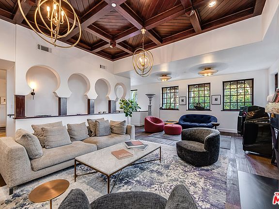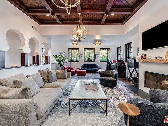 Featured in The Wall Street Journal this enchanting Villa in a premier Hollywood Hills location blends exotic elegancewith modern comfort just moments above the Sunset Strip. Enter through romantic archways into the dramatic "Grande Salon," where soaring 10-foot coffered ceilings, rich oak finishes, and ironwork evoke the atmosphere of a luxurious global retreat. The open-concept gourmet kitchen flows into a spacious dining area, with French doors that lead to outdoor terraces, ideal for sunset entertaining or quiet stargazing. With approximately 3,800 sqft of indoor-outdoor living, this home is designed for both grand gatherings and intimate escapes, featuring a fireplace patio, multiple view terraces, and a fully outfitted outdoor kitchen with dishwasher, stainless sink, and full-size refrigerator. A built-in water filtration system ensures high-quality water throughout the home, while an integrated fire sprinkler system provides discreet, state-of-the-art fire suppression for enhanced safety. An infrared sauna on the patio adds an indulgent spa-like touch to the outdoor experience. The primary suite offers its own fireplace, while two additional bedrooms with en-suite baths open to magical outdoor spaces. A private in-law unit with separate entrance, kitchenette, bath, and off-street parking offers added flexibility. Distinctive details include custom tile, hardwood floors, hanging lanterns, five sets of French doors, and a full solar panel system (owned) for energy efficiencyall echoing the timeless craftsmanship of an old-world villa. Just minutes from Runyon Canyon, Wattles Mansion, Sunset Strip, The Grove, and the Hollywood Bowl, this one-of-a-kind residence offers a rare blend of global romance and modern ease.