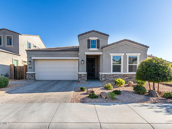 This is your chance to own a stunning home in the North Valley! Upon arrival, a 2-car garage, stone accents, and an easy-care front yard await. Neutral paint, recessed lighting, and wood-look tile flooring are some of the features you will find inside. Discover a welcoming great room with a sliding glass door to the backyard. The kitchen boasts built-in SS appliances, immaculate cabinetry, quartz counters, a walk-in pantry, and an island with a breakfast bar. Double doors open to the main suite, providing plush carpet and an ensuite with dual sinks, a sit-down shower, and a walk-in closet. Check out the backyard with a covered patio to relax, water feature, gas fire feature, travertine pavers and a built-in BBQ. Easy access to 101 & 51 Frwys. Don't miss this opportunity! Act now!