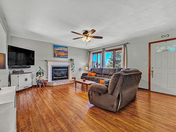 Updated ranch home with 3 bedrooms/2 baths set on an acre lot with fenced yard and mountain views. This well maintained property features a newer roof (2017), solar panels (2017), stainless steel appliances (2022), heat pump (2024), LVT in kitchen (2020), office created from garage space (2023), pumped out septic (2024), privacy fence (2022), refinished kitchen cabinets (2020), LED color changing lights controlled by phone (2023) and many more updates! The private backyard is enhanced by a privacy fence and mature fruit trees and bushes (apple, pear, raspberry, and blueberry) - perfect for relaxing or entertaining.