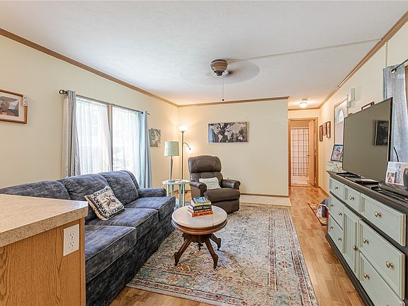 **Brand new to the market!** Meticulously maintained 2 bedroom, 2 bath ranch style home on a quiet private road. Cheerful interior and updated mechanics including a new roof and skylight (2022), furnace/AC (2017) and new flooring. Two refinished decks to relax on with the outdoor furniture included! Lot rent includes road maintenance, water, garbage removal and all taxes.