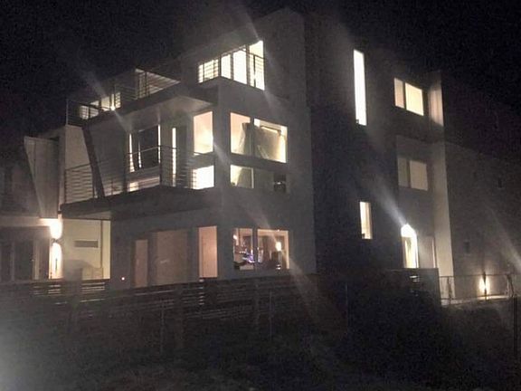 Modern residenceSpacious outdoor deckStainless-steel appliancesQuartz countertopsThird-floor entertainment roomWet barFlooded with natural light