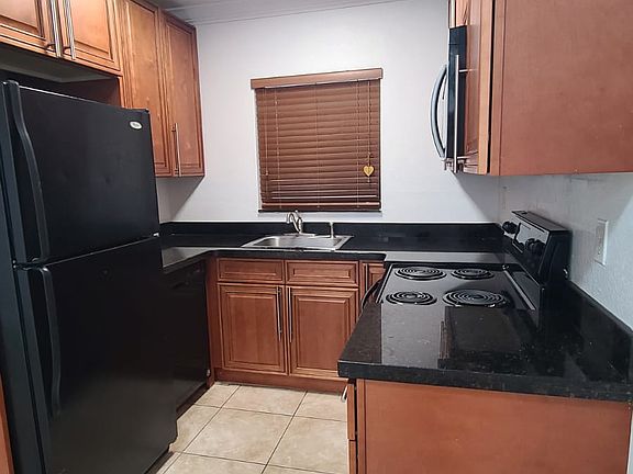 On-site laundry roomCentral air conditioningGarbage disposalTile floorsBlinds window coveringsStove and ovenSleek black appliances