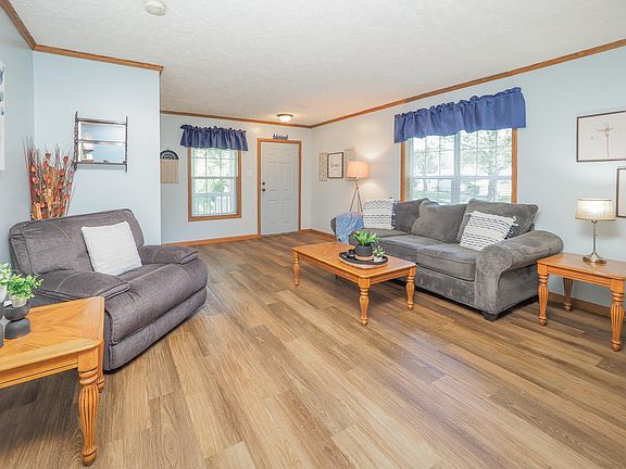 Welcome home! This charming 3 bed, 2 bath ranch is nestled on a private 1.6 acre lot, offering a peaceful retreat just minutes away from all the amenities of Gull Road. Upon entering, you'll be greeted by a bright & spacious living room with updated flooring throughout. The eat-in kitchen features updated countertops, all appliances, & a large window with views of the front yard. The primary suite is a true sanctuary with new flooring, a walk-in closet, & an ensuite bath. 2 additional bedrooms, a family bath, & convenient main floor laundry complete the interior. Outside, the property features a storage shed & an attached 2-car garage, perfect for all your tools & toys. The long driveway leads to this secluded haven, surrounded by mature trees for privacy & an expansive canvas to craft your own outdoor oasis. Don't miss the chance to make this your new home!
