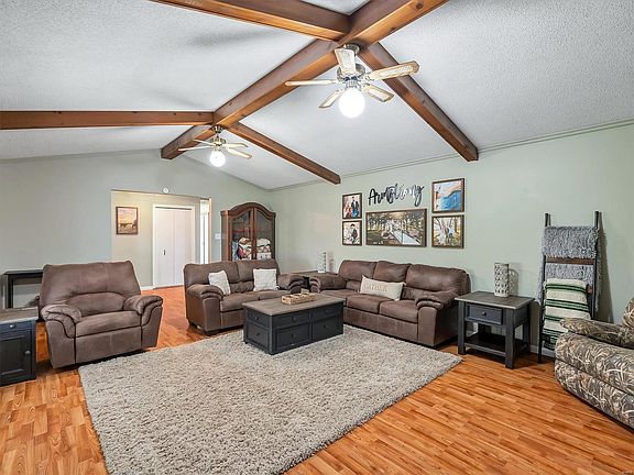 Welcome to this delightful 3-bedroom, 2-bathroom home located just outside of town on 1.1 acres. Offering 2,195 sq. ft. of living space, this residence features vaulted and beamed ceilings, creating a spacious and airy feel throughout. The open-concept kitchen and dining area is perfect for both everyday living and entertaining, with plenty of room for gatherings. The expansive primary bedroom offers comfort and privacy, complete with a large walk-in closet for ample storage. Outside, the detached workshop/garage is equipped with electricity, water, and poured concrete floors, providing a versatile space for hobbies or additional storage. With plenty of room to relax, work, or play, this home offers the best of both worlds—peaceful, country living with easy access to town conveniences. Whether you're seeking comfort, space, or functionality, this property offers it all, making it an ideal place to call home. Don’t miss the opportunity to make it yours today! Additional Rooms: Sun Room