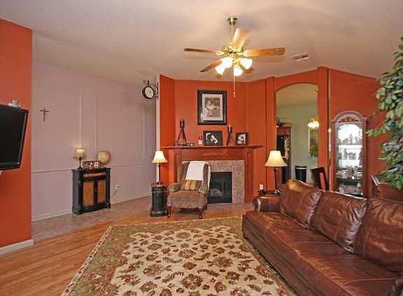 Nice home in Settlers Crossing backs up to greenbelt,neighborhood has walking trails,stocked ponds and playground.Affordable living in Deercreek schools.Spacious bedrooms some new carpet,hardwood floors,12"tiles and new lighting in bathrooms.Living room and master have vaulted ceilings.This home comes with a HWA home warranty!