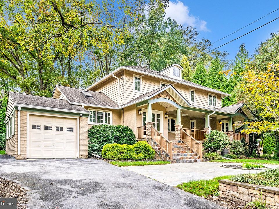 Simply Irresistible! Turn Key, Craftsman Style Beauty with 5 Bedrooms, 4 Baths, situated on a deep, park like setting, 1/3 acre wooded beautifully landscaped lot! This spectacular home has 3 Finished Levels and was renovated in 2017. The upper level primary bedroom suite has a balcony deck, custom built ins with a wet bar and an ensuite spa bath with an oversized custom stone shower and a separate luxurious jetted soaking tub.. There are two additional bedrooms and a center hall bath on the upper level as well as a stackable washer/dryer. (Separately on the lower level there is a laundry area with a full size washer and dryer.) This exquisite custom home features two additional bedrooms and a full bath on the main level with a cozy fireplace and a gourmet eat in kitchen with stainless steel appliances and a extra large granite center island. The lower level is fully finished and also has a family room with a fireplace and a separate flex room and a full bath. The exterior features large flagstone patios, front and rear, a oversized covered front porch with slate flooring and ceiling fans, In addition, there is a grand fireplace on the rear patio and a large oversized shed.