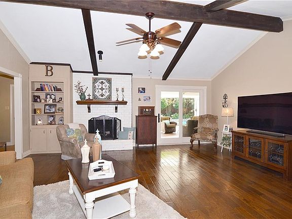 Lots of updates including saltwater pool, 8' fence, solid redwood deck, 21 seer hvac 4 ton inverter technology system, 30 yr roof less than year old, oversized gutters, all windows and glass doors replaced with low-e. The list goes on. Wood floors in living areas and new carpet in bedrooms. Oversized laundry room is also used as an office area. Additional insulation including garage door. Storage building could be a workshop and it does have electricity and a loft area. Whole house radiant barrier including garage sure help with energy costs! Backyard area is a wonderful for entertaining. Refrigerator conveys and most furnishings are available for purchase. Don't miss this one!