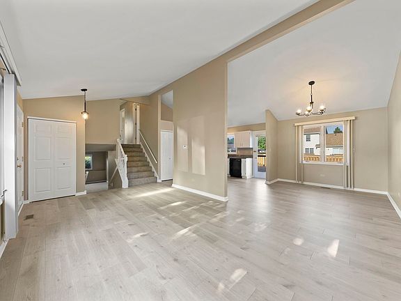Beautifully Remodeled Single-Family Tri-level Home in Crest Hill! Open and airy main level with new light fixtures (2023), new flooring (2023) and an abundance of natural light throughout. Kitchen has a new microwave (2024) and freshly painted cabinets (2023). Second level has three bedrooms with new carpeting (2023) and a full bathroom with dual sink vanity and shower/tub combination. Lower level has new carpeting (2023) an additional family room with a fireplace, additional bedroom and full bathroom. Laundry room with new washing machine (2024) and storage room can be found in the unfinished basement. Home also features new Furnace (2024) and A/C (2024). Roof and siding replaced (2020). Private backyard, 2 car garage. Park and trails within walking distance. Highly Rated School District! Short drive to several dining and shopping options. Near highway for easy commute, welcome home!