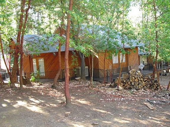 Private rustic property with two original custom built cabin/homes. Beautiful Madrones, Oaks and Pines and cleared areas. Gentle rolling land. Homes were built without permits. Property is being sold as to land value and homes without permits. The oldest cabin is in need of a lot of repair but has a unique rustic style. The main house has hickory cabinets and counter tops. Lots of wood. wide pine board floors. Steep loft stairs lead to loft with low ceilings. Steep stairs lead to basement room. Property has 3 wells all reported by owner as good.
