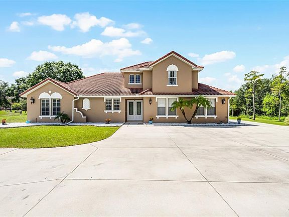 Back on market due to buyer unable to secure financing. Welcome to 19250 Newburg St, Orlando — a rare gem nestled in the serene Cape Orlando Estates/Wedgefield community. Set on just under 2 private acres, this expansive property offers lake views, abundant parking, and unmatched privacy as the last home on the street, bordered by peaceful woods with no through traffic. The main house boasts a spacious and functional 3-bedroom, 2-bathroom, split floorplan, designed for both everyday living and entertaining. Step into a bright, open layout featuring neutral paint and flooring throughout. The large kitchen is a chef’s dream with 42” cabinetry, a central island, stainless steel appliances, a breakfast bar, and cozy dinette — all seamlessly connected to the dining and living areas. Sliding doors from the living room and master bedroom lead to a covered courtyard patio and hot tub area, perfect for relaxing after a long day. The primary suite, located at the back of the home, offers privacy and direct patio access, while the two additional bedrooms share a hallway with a full bath and interior laundry room. This property also features two fully equipped in-law suites, ideal for multigenerational living, rental potential, or guest accommodations. The first-floor suite offers a private entrance, new kitchen, spacious bedroom, and a wheelchair-accessible bathroom with a walk-in shower. The upstairs suite includes a large great room, new kitchen, oversized bedroom with walk-in closet, and a full bathroom with a shower/tub combo. Additional notable upgrades include water softener (2024), fresh interior & exterior paint (2023–2024), new gutters (2022), hot tub (2023), updated light fixtures & fans, new carpet (2023), water heater (2015). With its versatile layout, modern updates, and peaceful location, this home offers an exceptional opportunity for families, investors, or anyone seeking extra space with privacy.