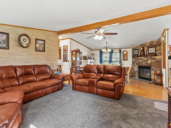 Your Own Piece of the Country! Tucked back off the road, this beautiful 36.79± acre property offers the perfect blend of open rolling meadows, a creek, and approximately 12 acres of woods—ideal for privacy, recreation, or simply enjoying nature. The property features a 1997 one-owner manufactured home with 3 bedrooms and 2 full baths. Updates include: Newer roof and skylights, Updated windows, New front and patio doors HVAC system approximately 5 years old. Enjoy the open-concept great room design, complete with a cozy wood-burning fireplace—perfect for gathering with family and friends. Whether you're looking for a quiet homestead, hobby farm, or just room to roam, this scenic and versatile acreage offers endless possibilities.