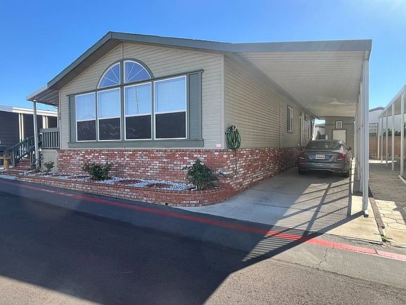 Del Mar Estates is a very active Senior Community 55/40. First person must be 55 and second person can be 40+. Amenities include Year-Round Heated Swimming Pool, Hot Tub, Clubhouse, Pickleball, Tennis Court and Gym. Small Pets allowed with Park Approval...No walking in the Park. LOW YEARLY INCREASES ~~2004 Hallmark-Southwest 1988 Sq Ft. ~~3 Bedrooms/2 Baths ~~Large Master Bedroom w/2 Closets and sitting area ~~High Ceilings ~~Laundry Room w/Lots of Cabinet Space ~~Cozy Fireplace ~~Shed ~~2 Car Parking ~~Central A/C ~~Only 2.5 Miles to the Beach