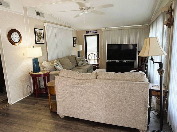 Welcome to Lake Fairways Golf & Country Club, a premier 40+ gated community in North Fort Myers where resort-style living meets the Florida lifestyle. This charming 2-bedroom, 2-bath home comes fully furnished and offers all the features you need to start enjoying your Florida golf dream. The kitchen is beautifully updated with modern countertops, newer appliances, and a convenient pass-through bar, making it easy to cook and entertain. The spacious living and dining areas provide plenty of room for gathering with your new Florida friends. Your primary suite includes a walk-in closet and a private ensuite bath for comfort and convenience. Additional highlights include a large shed with a newer washer and dryer, a screened-in porch perfect for relaxing, and an extended carport for ample parking. Additional updates give you peace of mind: roof (2023), AC (2022), windows (2019), and no polybutylene plumbing. Lake Fairways is an active golf and country club community featuring an 18-hole executive golf course, driving range, heated swimming pool, fitness center, tennis and pickleball courts, shuffleboard, bocce ball, and a spacious clubhouse with restaurant and lounge. Residents enjoy a wide variety of clubs, social events, and activities year-round, making it easy to connect and live the vibrant Florida lifestyle. Call us today to schedule your viewing.