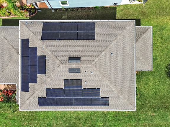 Master bedroom retreat with: Expansive en-suite bathroom with dual sinks, Huge walk-in closet for effortless organization, Solar panels keep your energy bills low with a flat fee (Summer electric bills often as low as $15/month, winter $50 75).