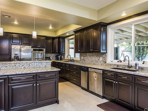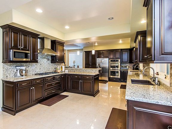 PRICE REDUCTION! MOTIVATED SELLER! This home is a HIDDEN GEM! Downstairs was completely remodeled in 2012. 4 bedrooms/3.5 bathrooms. The beautiful Marble tile floor entry with a chandelier over head, flows into the living room with laminate wood flooring with a large fireplace and wiring for the wall mounted TV in the walls to keep everything neat & uncluttered. Continue into the open remodeled gourmet kitchen with 2 full sinks, pot filler above the stove, granite counter tops, stainless steel appliances including dishwasher, trash compactor & microwave oven, built-in breakfast counter and recessed lighting. From the kitchen is the dining area with a lighted ceiling fan above which flows into the family room with laminate wood flooring, recessed lighting and granite counter wet bar. Upstairs has carpet flooring installed in 2012, all 4 bedrooms upstairs with vaulted ceilings, Double doors into the master bedroom with large walk-in closet. Also included is the library/office with recessed lighting and built-in shelving. Laundry Room is upstairs as well. Dual pane windows throughout most of the house, upgraded fixtures, new five ton A/C unit (Less than 1 year old), surveillance system with 6 cameras (3 weeks old), 10 Foot ceilings, 50 amp breaker dedicated to the Jacuzzi outside, custom built cabinets in the garage, vinyl gates on both sides of the home (3 weeks old). 2 Car Garage and extra high wall in the backyard. DON'T MISS OUT ON THIS BEAUTIFUL HOME.
