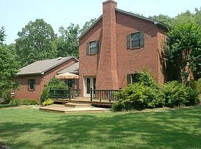 Charming Brick Home sits in wooded area. 3BR/3BA, office, open floor plan, vaulted ceiling, WBFP, french doors open onto large deck & professional landscaped lawn, city water & sewer. Little house on back lawn has H&AC... could be playhouse, office, clubhouse or studio. $223,000 MLS 95997
