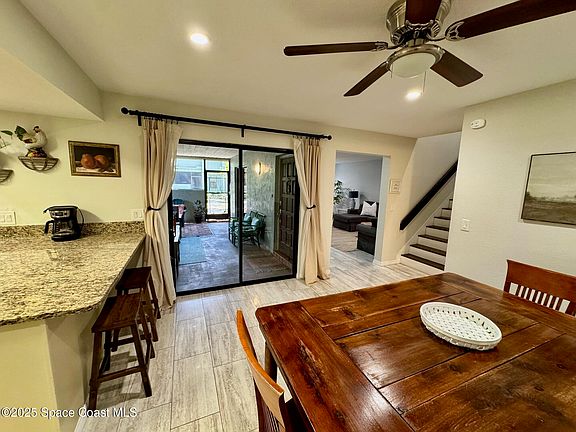 This home has calming natural light and a neutral paint scheme. The interior was completely remodeled (Nov 2019) and new roof (Aug 2025). Featuring Tempur-pedic carpet, new tile, recessed lighting, and new ceiling fans. Kitchen nicely updated with almond/coffee stained cabinetry, granite, and stainless steel appliances. The extra large living room and dining area open up to the covered screened porch. It offers 3 spacious bedrooms, 2.5 baths. Two of the upstairs bedrooms open to connected balcony perfect for rocket launches. Primary bedroom offers an ensuite bathroom with walk-in closet. Bathrooms completely updated with subway tile, white cabinetry and fixtures. This home is located in a desirable area- convenient to the YMCA, Tituslanding and more!