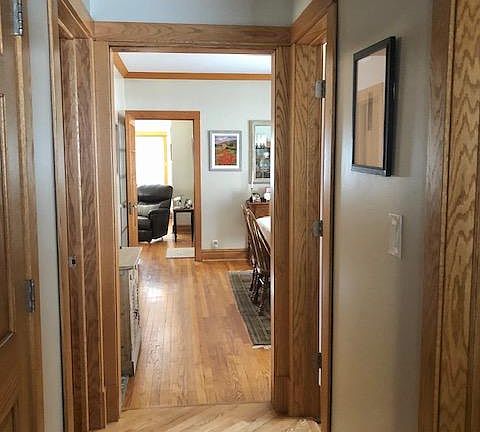 Beautifully renovated 3 BR, 1 &1/2 Bath apt. on 1st floor on quiet street/two-flat building in north Berwyn. Near Oak Park and convenient to all amenities. Brand new eat-in kitchen with island, quartz countertops, all new stainless steel appliances including dishwasher, loads of storage in beautiful white cabinets. Main bath features double sinks, quartz countertop, and a state-of-the-art tiled shower. Master bedroom has his and hers walk-in custom closets. Other two bedrooms also have custom closets. Additional 1/2 bath. Laundry in building and parking and storage included. Don't miss this one!