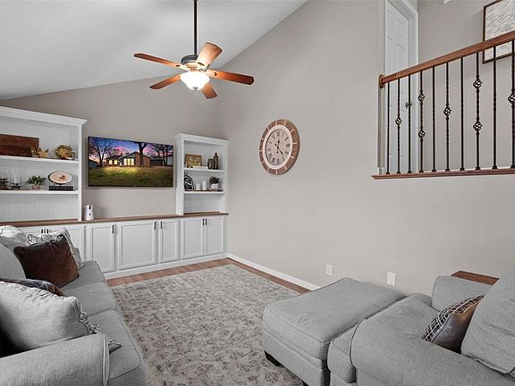 - Shower, Kitchen/Dining Room Combo, Bookcases, Open Floorplan, Walk-In Closet(s), Kitchen Island, Custom Cabinetry, Eat-in Kitchen, Granite Counters