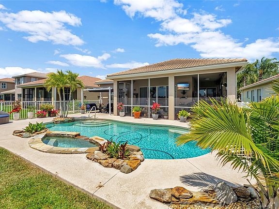 Captivating lakefront 3BR/2BA pool home with heated saltwater pool & spa—your private retreat! Savor tranquil lake views from the screened porch and fenced backyard, ideal for entertaining or unwinding. Interior highlights include impact windows/doors, fresh paint, designer lighting, upgraded fans, and tile floors throughout. The gourmet kitchen shines with granite counters, premium cabinetry, and a stylish backsplash. Nestled in a sought-after community with low HOA and resort-style amenities, this move-in ready beauty blends luxury, comfort, and breathtaking views! Szeaproxsubj2err