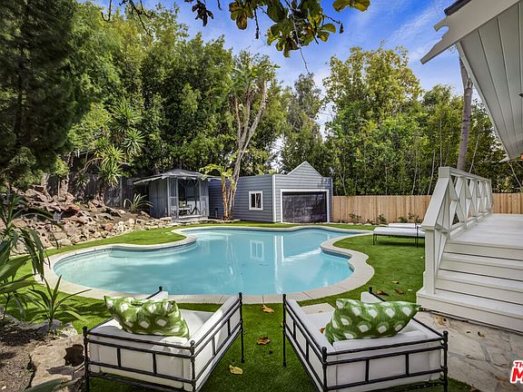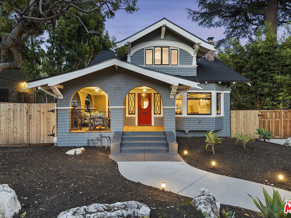 Located on a block renowned for its early 20th century bungalows on a gated expansive privately landscaped lot, this circa 1906 storybook charmer with pool is one of the linchpins of Hollywood Grove: Los Feliz' only Historical Preservation Zone. Newly restored and ready for its next chapter, this home has undergone a thoughtful and luxurious restoration, effortlessly retaining its distinctive vintage ambience while offering bright casual modern style. Meandering walkway leads to front entrance with huge extraordinary wrap around covered porch, with original shingled arches framing the picturesque street view. Old world vestibule opens to formal living room with gorgeous original fireplace, original wainscot, and copious original windows allowing natural sunlight and nature to completely envelop the entire space. Formal dining room with patio French door leads to the chic newly remodeled kitchen: with built-in banquette, new cabinets, new counters, new fixtures and brand-new chef's appliances all overlooking the back and side yards. Also downstairs is a huge third bedroom or family room with separate office alcove areaall opening to the back yard. Upstairs are two more bedrooms and two baths including a sublime primary suite with new tiled bath with separate shower and soaking tub plus separate office nook. The resort like back yard is a 10: a stunning sanctuary for relaxingand entertaining with huge lagoon-style swimming pool, dramatic waterfall, and cozy gazebo. Long driveway and detached two car garage for parking or hanging out. Highlights include original: hardwood floors, moldings, doors, windows and exterior wooden shingles plus new plumbing, electrical and roof. Amazing area walkable to Franklin Village, Oaks Gourmet, Gelson's, Lazy acres and Griffith Park. Superb!