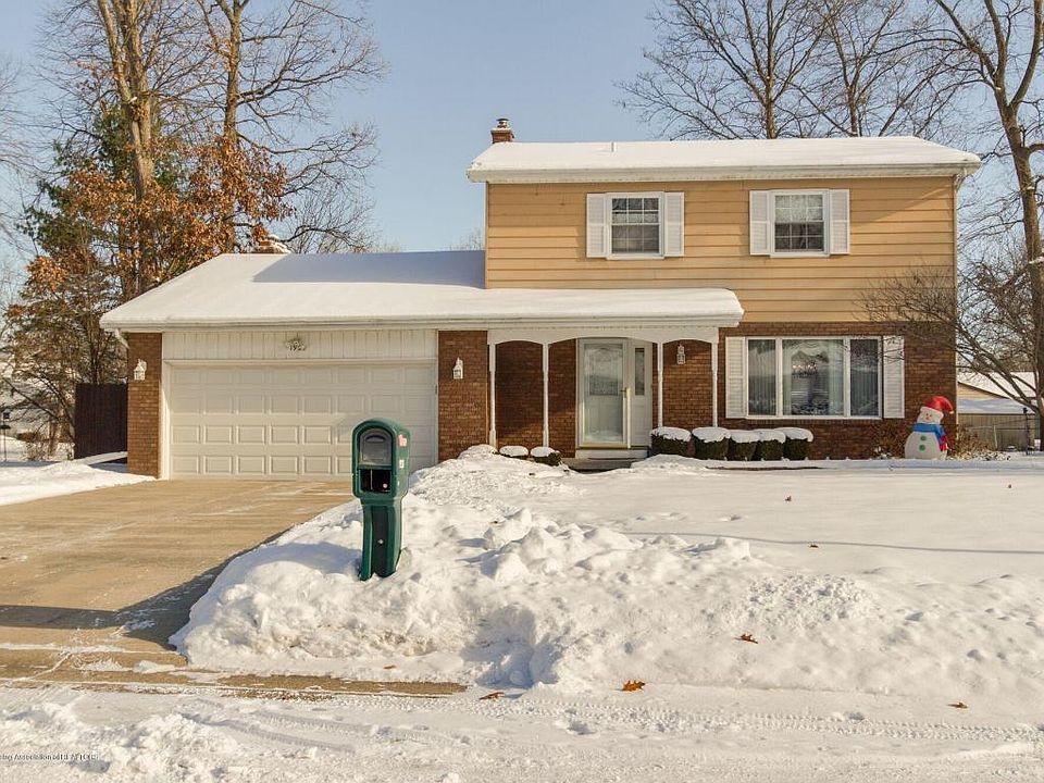 Welcome home to 1926 Pageant Way in Holt, located in a beautiful, mature neighborhood near Delhi Township Trails. This is a convenient location and dead end street. This beautiful 3 bedroom, 2.5 bathroom is move-in ready with renovated hardwood flooring in kitchen and hallway; newer carpet, furnace, water heater, kitchen counters, bathrooms, garage door. Central air system updated in 2017. All appliances remain in the home. Large living room and formal dining room, finished basement with workshop, rec room, and exercise room. A brick-faced gas fireplace in the cedar-beamed family room leads to a large, screened-in-porch and wood deck, fenced yard and storage shed. The seasons will bloom with flowers and grasses in this professionally landscaped front yard.