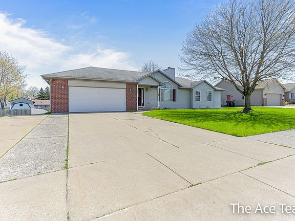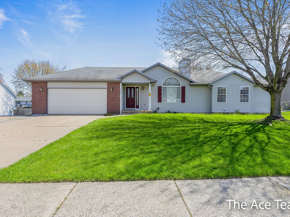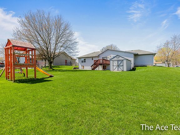 Step outside to enjoy a huge backyard with an expanded deck, underground sprinklers, and a 12x20 barn storage with electricity. Recent updates include a new furnace and hot water heater in 2019, and a new central air unit in 2021. This home is ready to welcome your family! Conveniently located in a quiet neighborhood within the Kenowa Hills School district, with easy access to stores and the highway. This property is move-in ready, featuring a primary suite on the main floor, a laundry room, and a large garage with high ceilings.