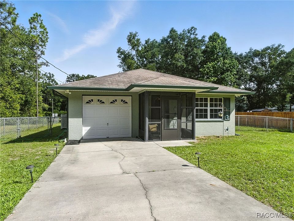 Welcome home to your charming Citrus Springs 4 bedroom 2 bathroom home!!! ***NEW ROOF COMING!!***This home sits on a quaint quarter acre lot that has the back yard fully fenced in for you! There is also a 10x12 shed on the property giving you extra storage above and beyond the attached garage. Walking up to the front door you will be greeted with a fully screened patio, and entry into the living room that boasts an open concept to the dining and kitchen area. The home has 3 guest bedrooms and a guest bathroom down the hallway, and ends at the master suite! The well sized master and master bathroom also leads out to the back patio. So much in this home is waiting for new owners to come, enjoy and purchase!