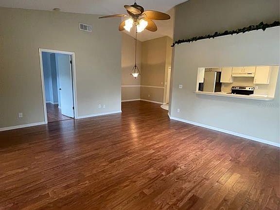 Pond viewHigh ceilingsOpen floor planHardwood floorsEating space in kitchenSeparate dining roomOne story villa