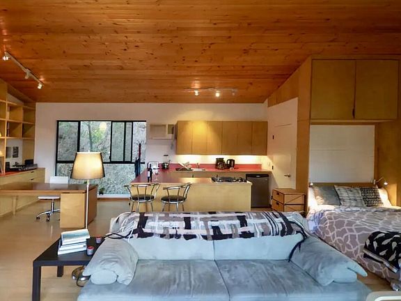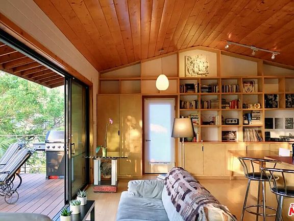 Two houses on a lot! 1920's California bungalow completely reimagined in 2011 by Los Angeles-based architect Leigh Jerrard. With pristine Scandinavian inspiration, these two homes on a lot exhibit clean organic modern elements coupled with a mountain retreat aesthetic. The lower residence is a one bedroom with vaulted ceilings and a large outdoor deck/patio. The upper residence is an open floor plan with its own deck, high vaulted ceilings, a built-in Murphy bed, canyon views, and is permitted as a rec room. Totaling 1024 sqft, it's a perfect live/work residence or a strong proven income property.