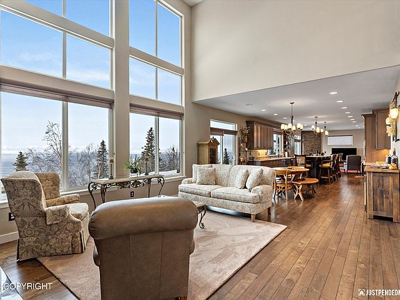 Stunning hillside home on an acre + lot. This thoughtfully designed home takes advantage of breathtaking views. Every window frames a masterpiece. Channel your inner chef in the gourmet kitchen, equipped with top-of-the-line appliances, custom cabinetry & abundant counter space, plus a 15-foot granite island & breakfast bar. Premium finishes,expansive living spaces & high ceilings. Connect with the outdoors for morning coffee overlooking Potter Marsh, enjoy the 566 sq. ft. south-facing Trex deck from sunrise to sunset, relax in the spacious master bath soaking tub and watch the Inlet tides roll in.